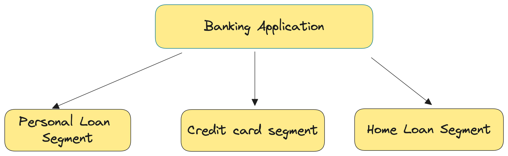 Let's take a banking application and we have different segments such as Personal loans, Credit cards, etc.